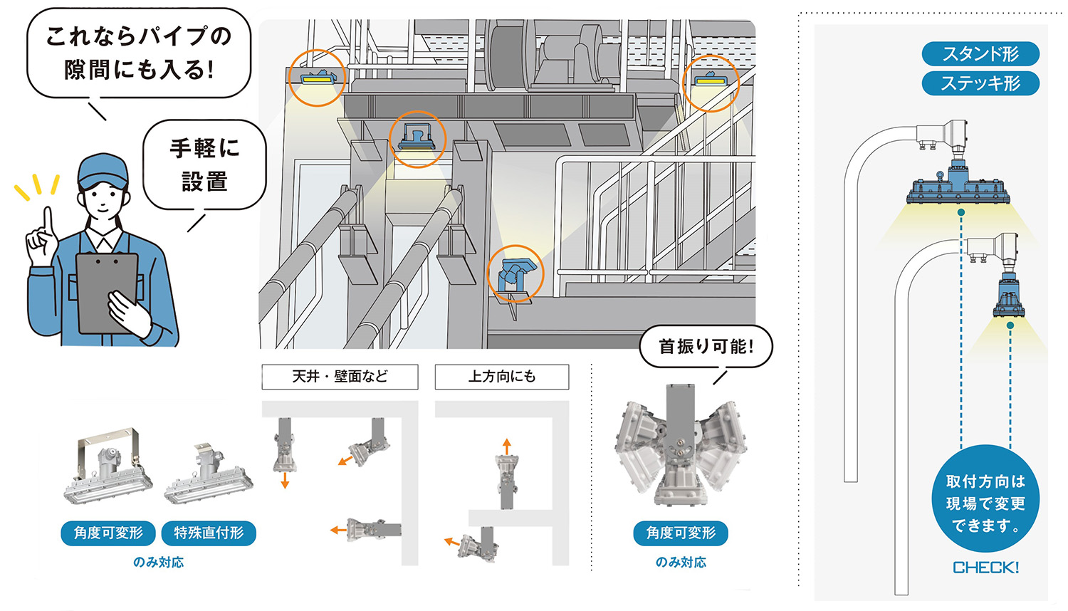 自由に取付けて、自由に使えるクラス最小・最軽量の防爆形LED照明器具が登場!!