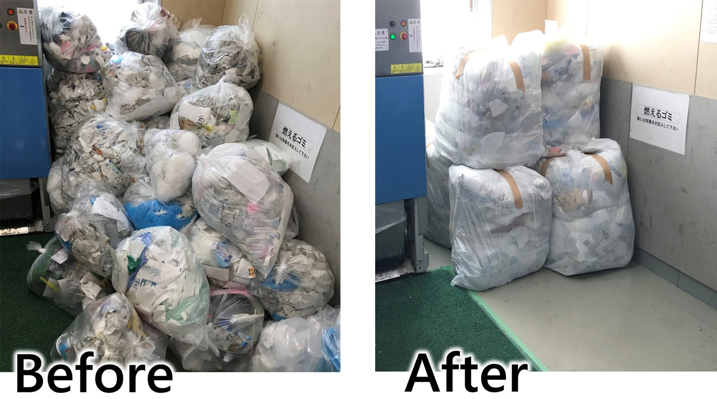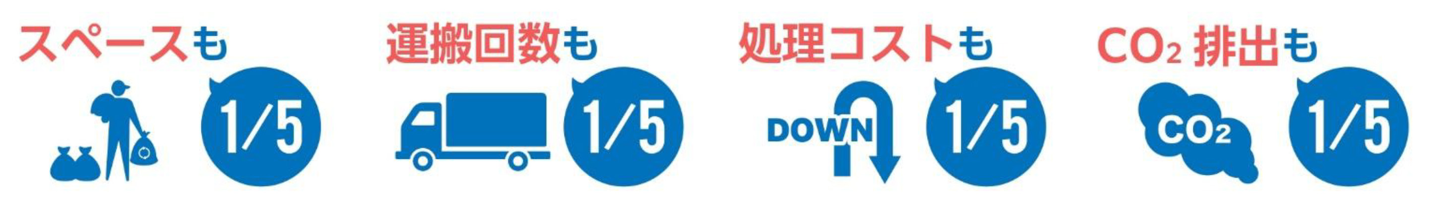 プラごみや紙ごみなどを1/5に圧縮。