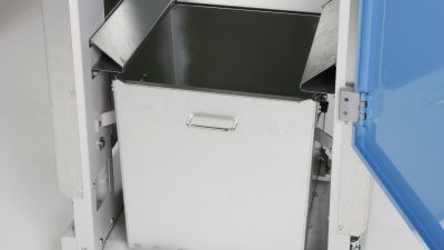 小型安全シンプル設計。扉センサにより、万が一扉が開くと自動停止。油圧式のようなオイル交換不要。部品点数が少なくメンテナンスが簡単。キャスター付きでらくらく移動が可能です。
