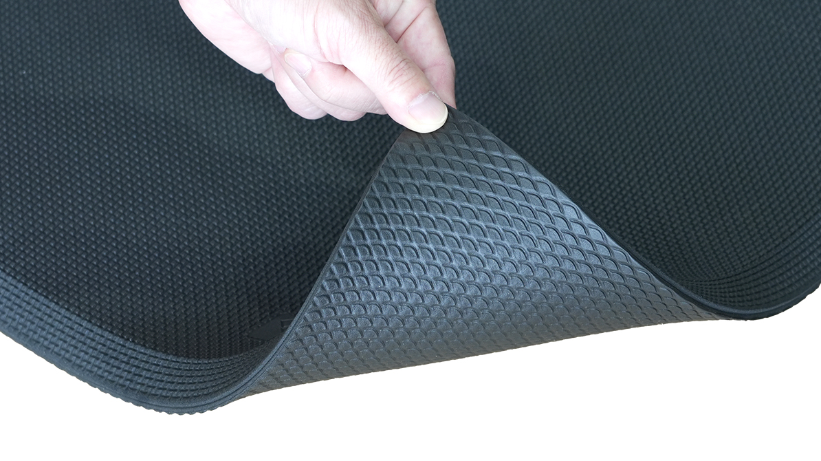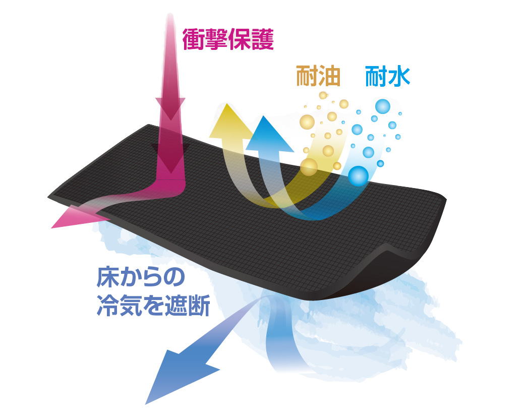 厚さ17mmの優れたクッション性が体重負担を分散し、足腰の疲労を軽減します。 耐油性・耐水性に優れています。改正RoHS対応(10物質対応)