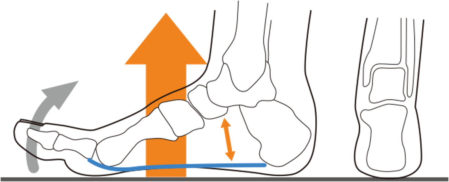 ②アーチをサポートし、衝撃吸収力が高まる