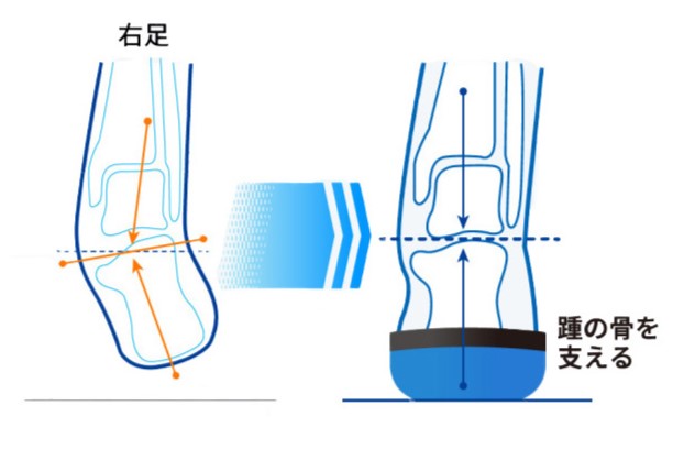 足本来の機能を引き出す理想的なバランスに導き、足にかかる負担を軽減します。