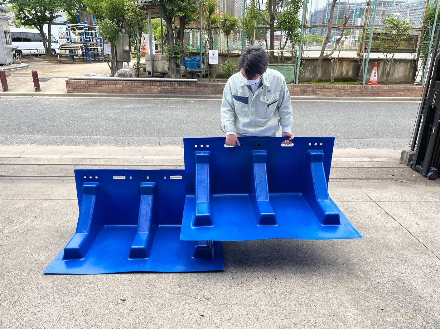 設置は置くだけで簡単、長穴取っ手で、軽くて運びやすい。1枚追加ごとに1m延長可能。重量物を置けばより安心。