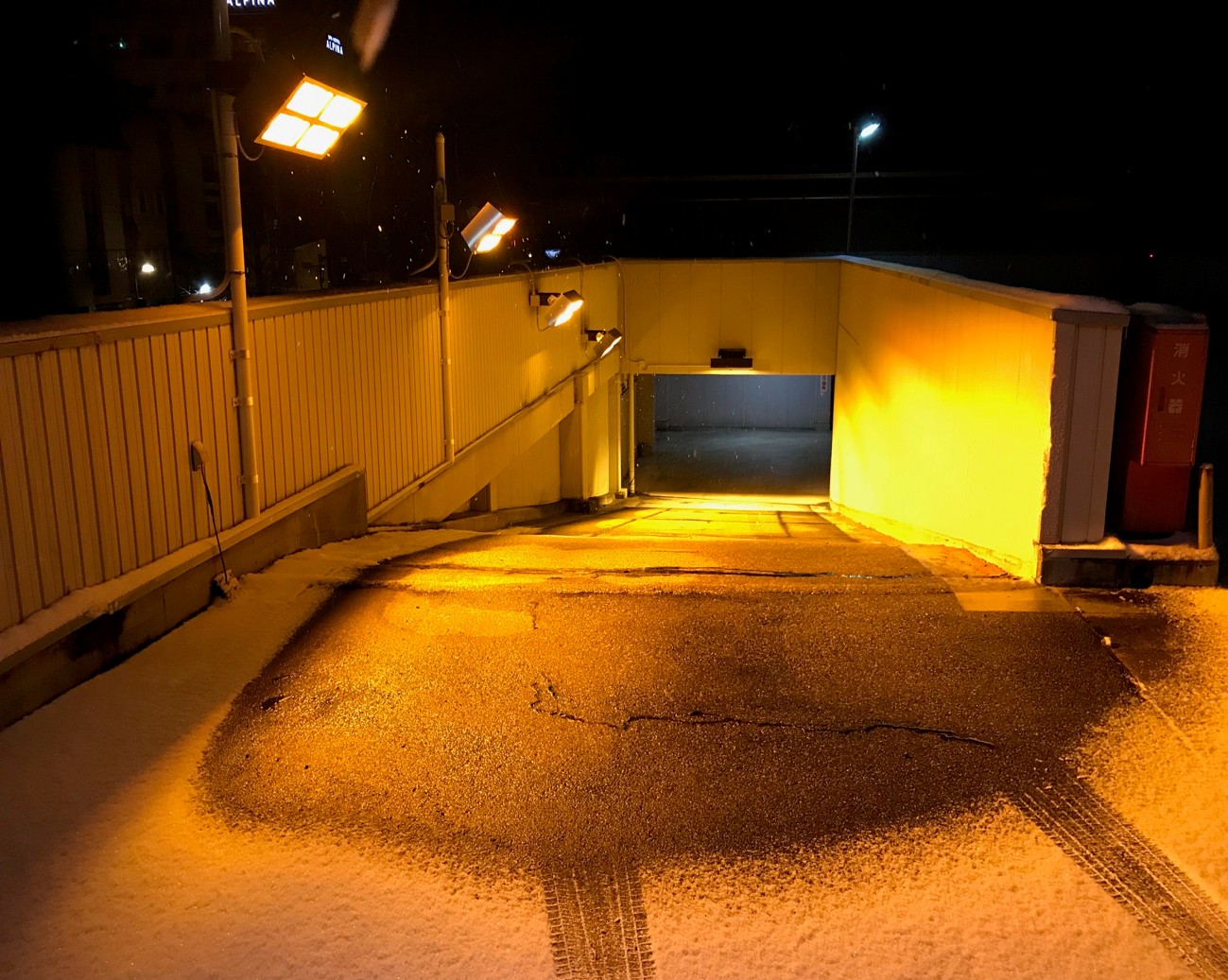 降雪センサによる制御運転で降雪と同時に点灯。