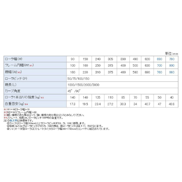 • ローラ径Φ42.7で50mmピッチが可能な中荷重用コンベヤ。