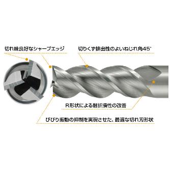 アルミニウム合金加工用超硬エンドミル C3MAL D1200