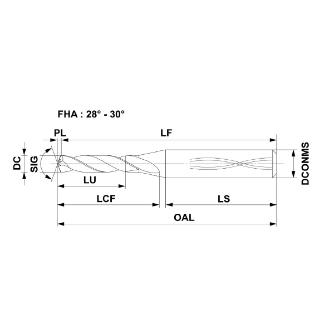 • フルートねじれ角(°):28