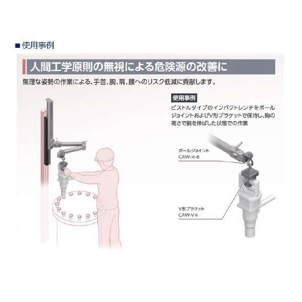 | 用途 | ●ツール・工具等の保持・操縦のサポートに●作業者の腰や背中、肩にかかる負担の軽減に |