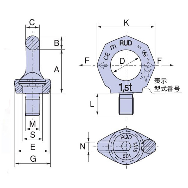 • アイ部の浮き出し文字は型式番号です。基本使用荷重ではありません。