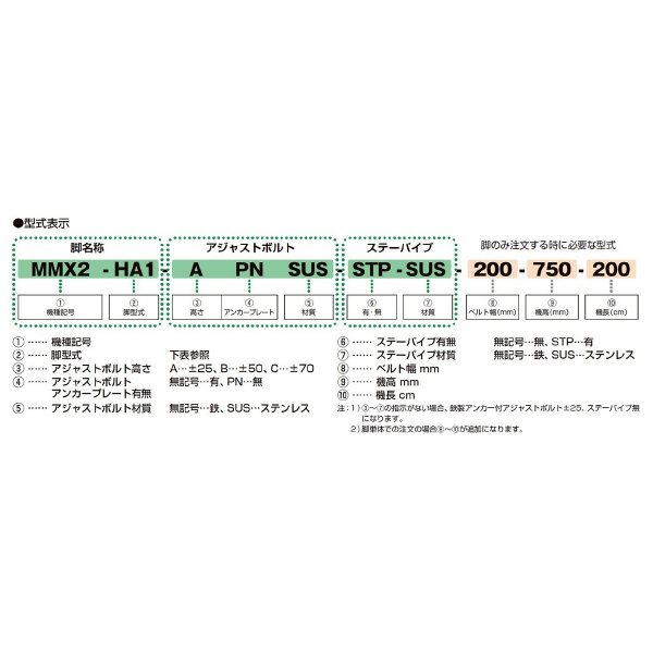 ベルトコンベヤ脚 MMX2-HA1-A-100-700