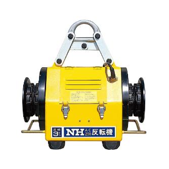 • NH反転機は小型ながら大きな能力。ワークは何でもOK、ワークの着脱も簡単、スリングを掛けて、手元スイッチを押せばブレーキモータによりスムーズに回転します。スイッチを離せばブレーキでピタリと停止、反転角度も思いのままに自由自在です。