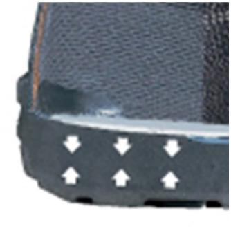 • 鋼製先芯と同等の強度を持ち、しかも軽量なワイドACM樹脂先芯(Advanced Composite Material:先端複合素材)。